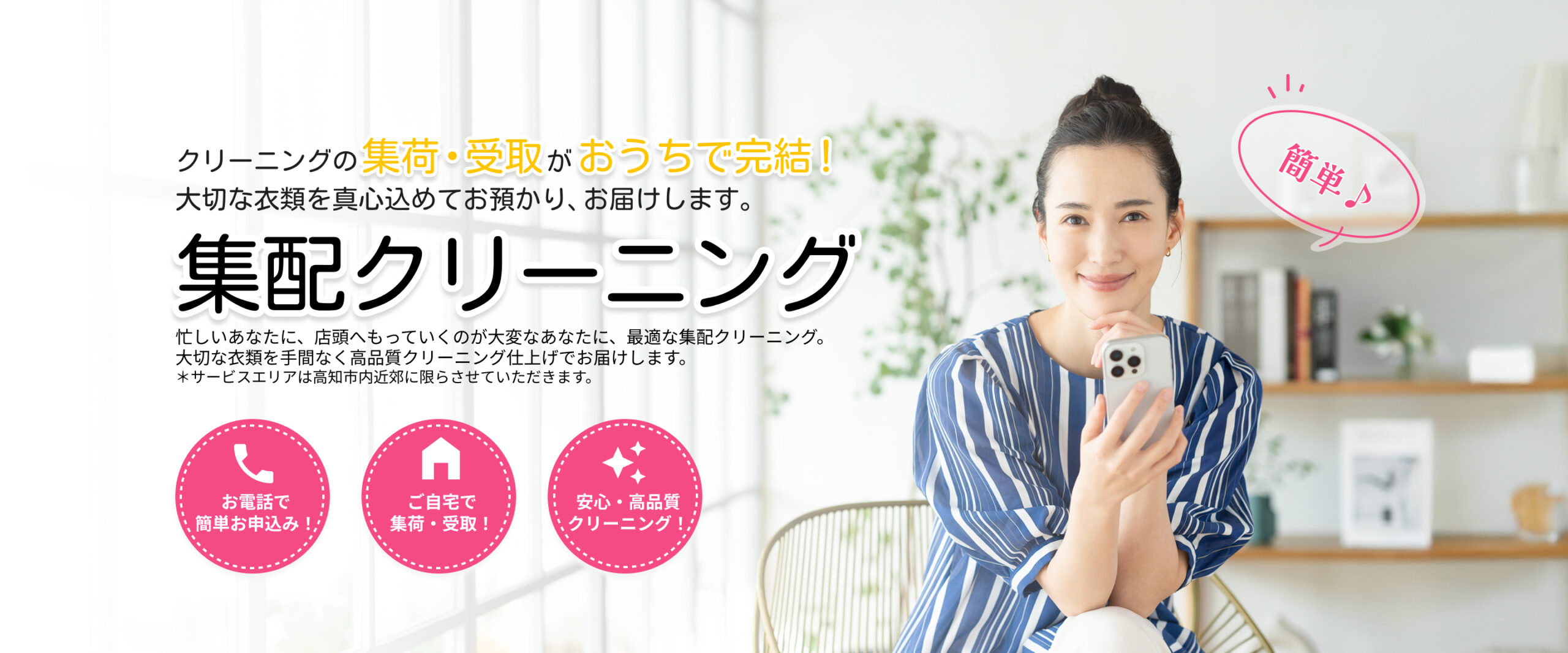 忙しいあなたに、店頭へもっていくのが大変なあなたに、最適な集配クリーニング。大切な衣類を手間なく高品質クリーニング仕上げでお届けします。
