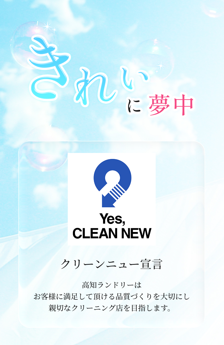 高知ランドリーでは個人向け、企業向けの各種サービスを行っています。私たちは、衣類等の汚れやシミをきれいに取り除く技術はもちろん、お客様との信頼あるコミュニケーションづくりを大切にしています。